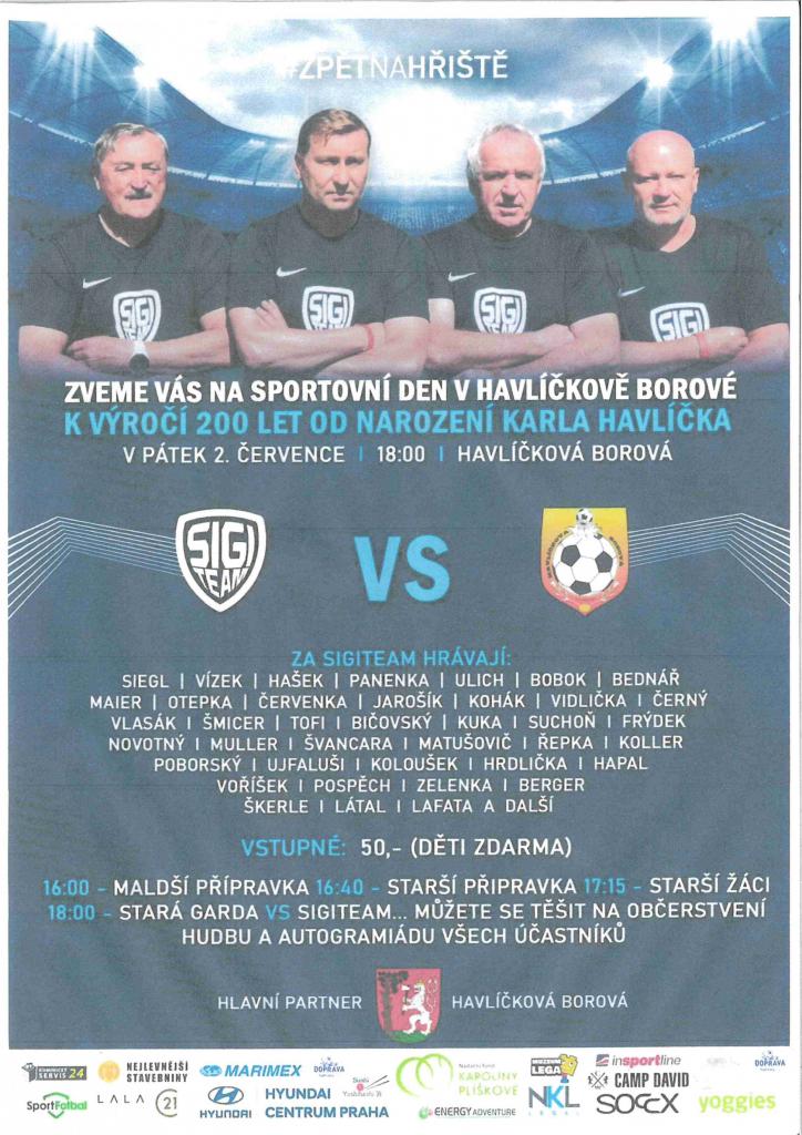 18:00 hraje SIGI TEAM VS HAVLÍČKOVA BOROVÁ - STARÁ GARDA.