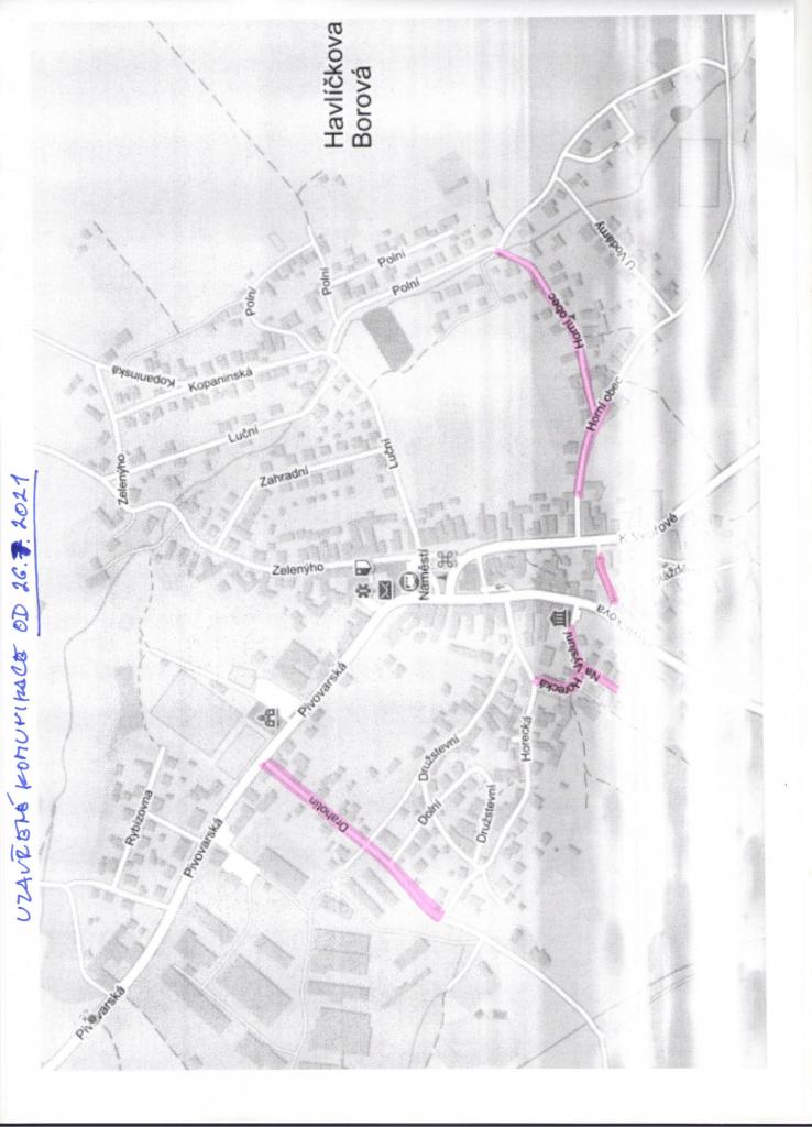 Pozor! V příložené mapě jsou vyznačeny komunikace, které budou od pondělí 26.7. uzavřené a neprůjezdné z důvodu příprav rýh po kanalizaci pro asfaltování. Asfaltování následně proběhne v termínu 3.8-10.8. Dále prosíme občany o vyparkování aut z těchto komunikací před zahájením prací.