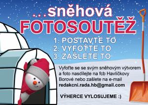Vyhlašujeme Sněhovou fotosoutěž! Vyfoťte se se svým sněhovým výtvorem a foto nám zašlete na fb či email. Výherce losujeme, takže každý má stejnou šanci vyhrát.