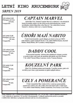 Program letního kina v Krucemburku na měsíc srpen 2019