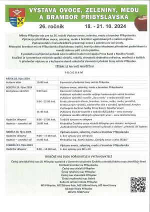 Město Přibyslav vás zve na 26. ročník Výstavy ovoce, zeleniny, medu a brambor Přibyslavska ve dnech 18. - 21. 10. 2024.