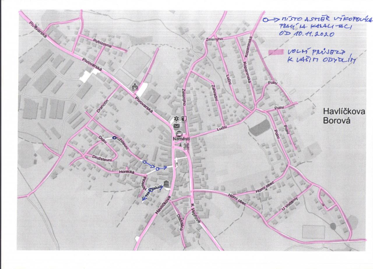 Aktualizovaný mapový podklad s výkopovými pracemi (kanalizace) od 10. 11. 2020