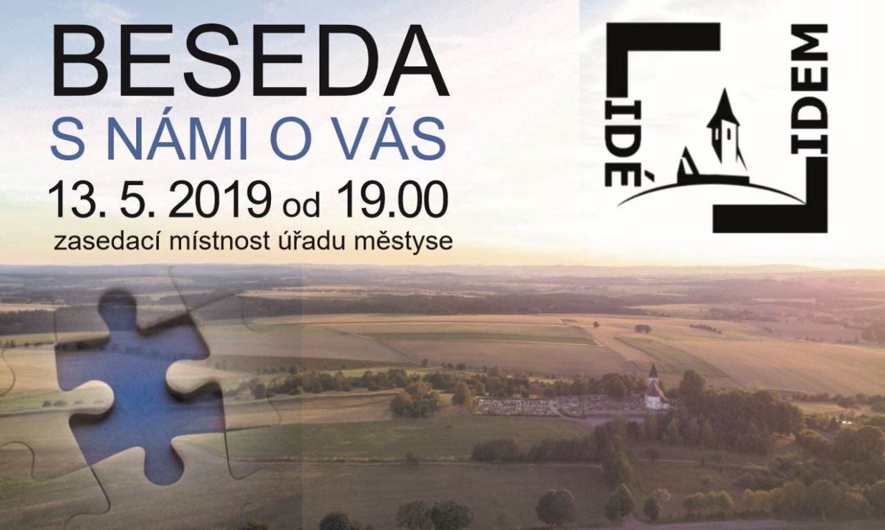 Srdečně Vás zveme na besedu S NÁMI O VÁS, která se uskuteční 13.5. od 19:00 v zasedací místnosti úřadu městyse.