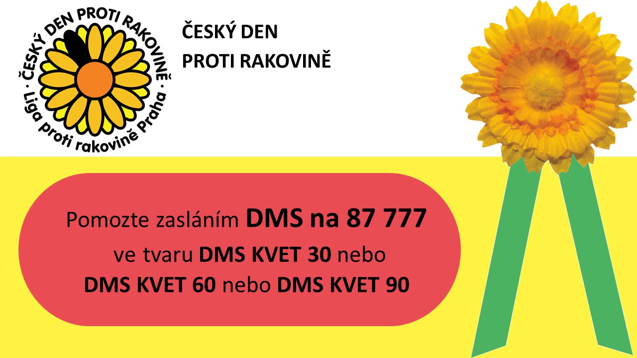 Pomozte letos pomocí zaslání DMS a podpořte tak boj proti rakovině. DMS je možné poslat na číslo 87 777 ve tvaru: DMS KVET 30 DMS KVET 60 DMS KVET 90