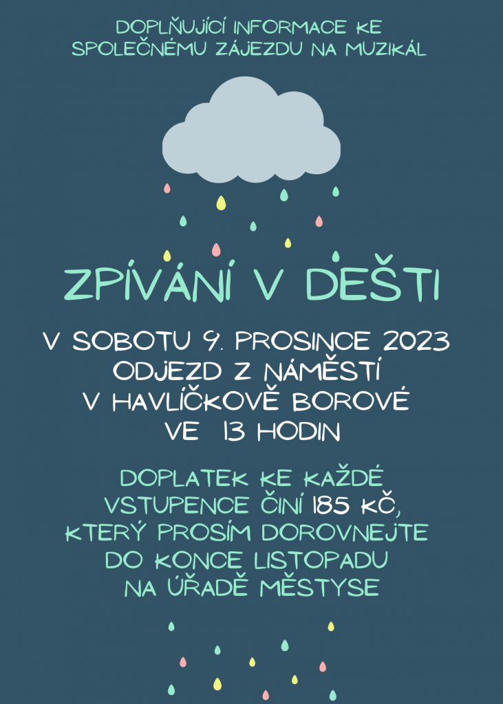 Odjezd na muzikál Zpívání v dešti bude 9. prosince ve 13 hodin z náměstí.