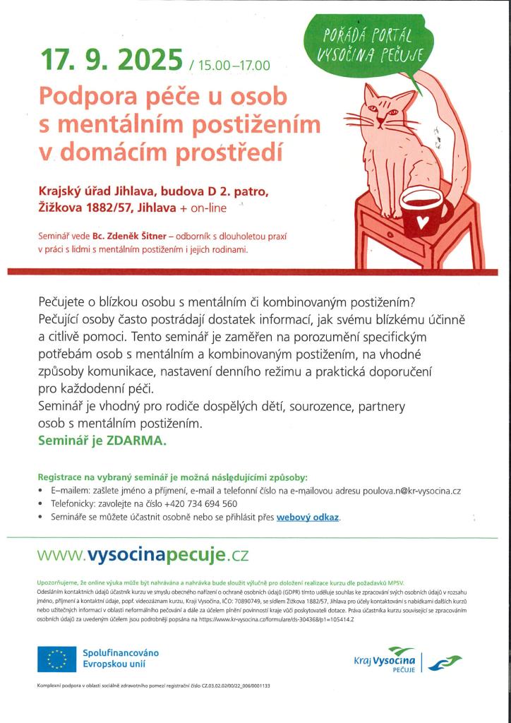 Kraj Vysočina realizuje v měsíci září další aktivity pro pečující. Jedná se o vzdělávací online kurzy i akreditované prezenční kurzy. Pro všechny pečující je otevřena "poradna Vysočina pečuje", poradna nabízí zdarma také psychoterapeutické poradenství.