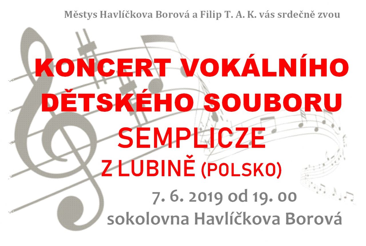Městys Havlíčkova Borová a Filip T.A.K. Vás srdečně zvou na Koncert vokálního dětského souboru Semplicze z Lubině.