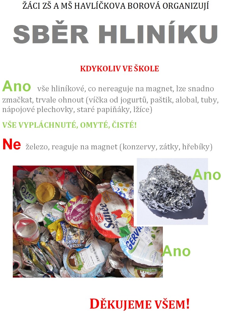 Od září máte možnost odnést hliník na sběr do školy. Co patří do sběru a co ne vyčtete na plakátu.