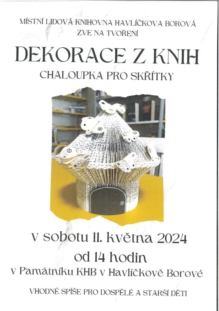 Přijďte si vyrobit chaloupku pro skřítky, v sobotu 11. května 2024 od 14 hodin v Památníku KHB v Havlíčkově Borové.