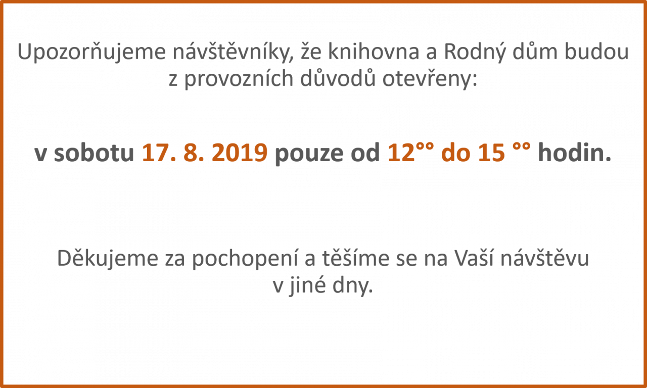 Upozornění z knihovny a Rodného domu KHB