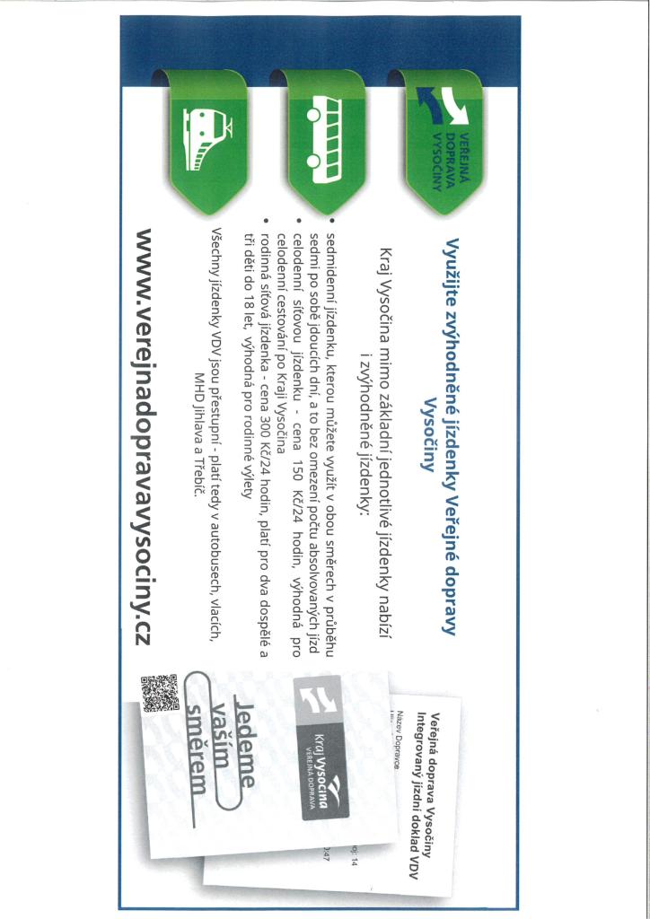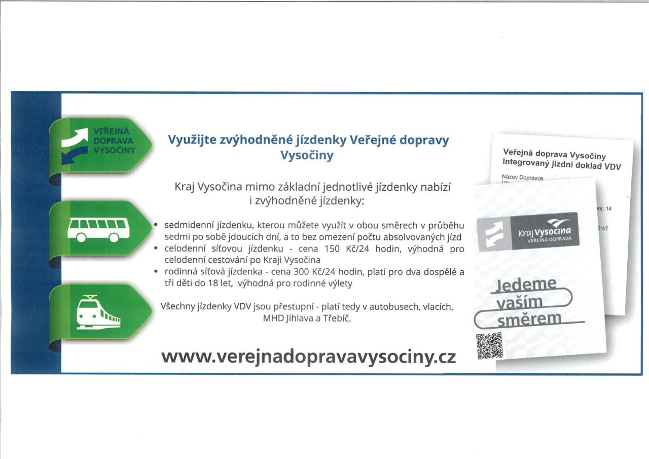 Zvýhodněné jízdenky Veřejné dopravy Vysočiny