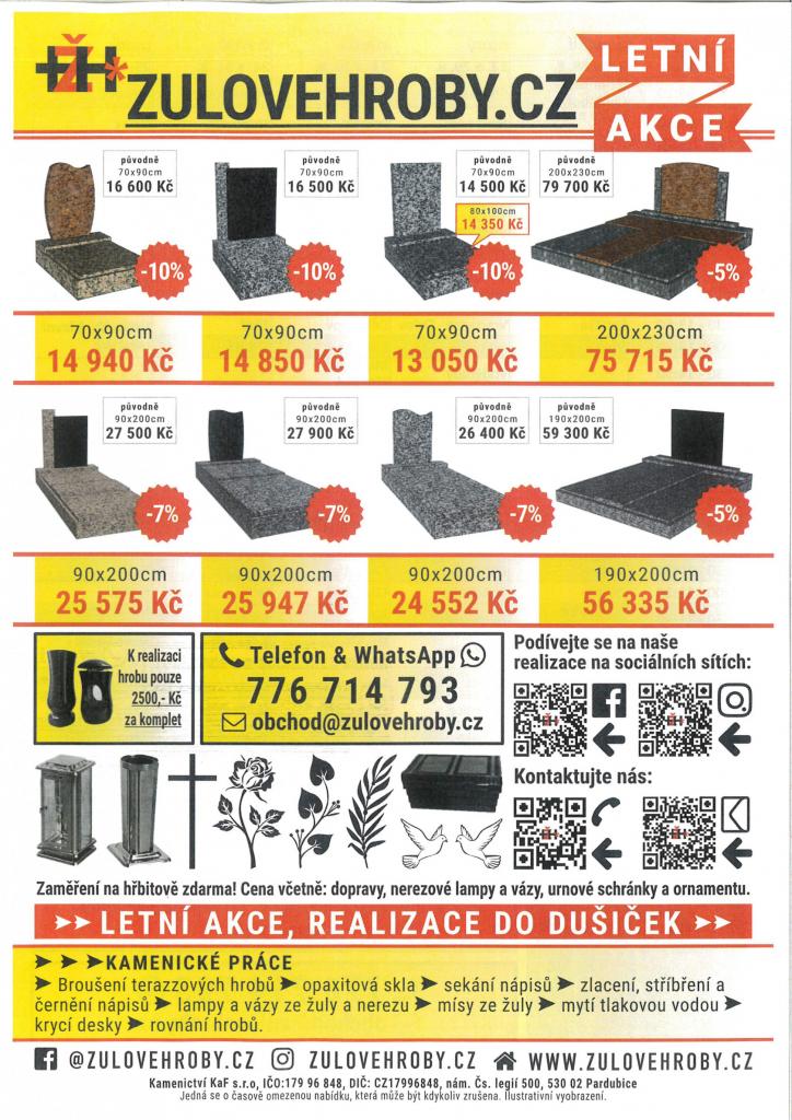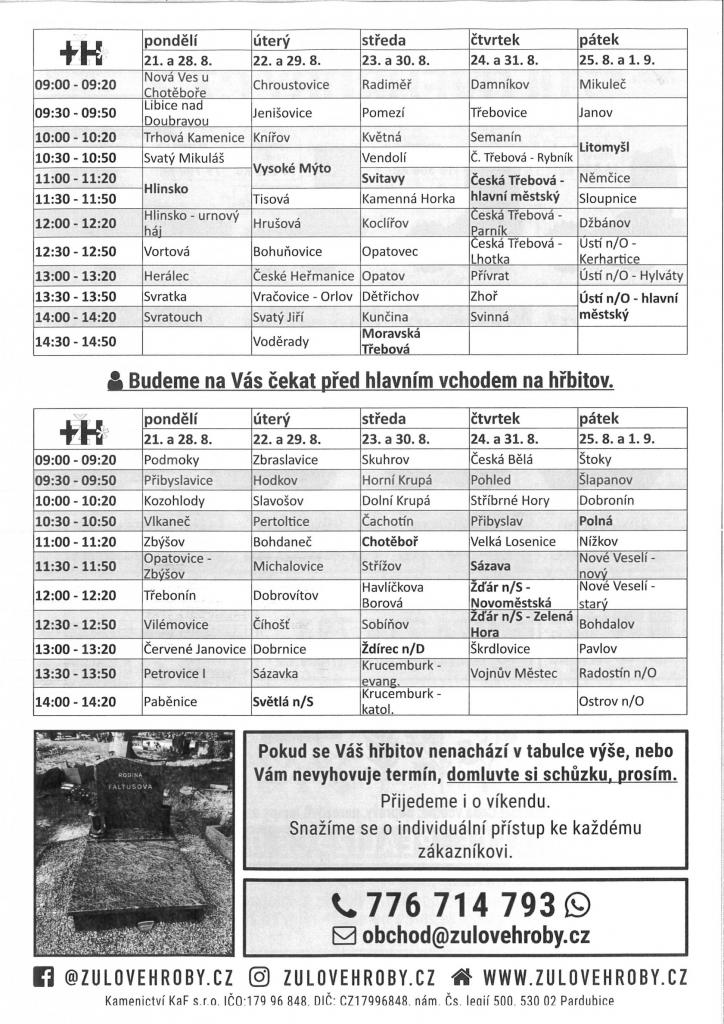 Ve středu 23. a 30. 8. v 12:00 – 12:20 h. na hřbitově v H. Borové bude Kamenictví KaF s.r.o. přijímat objednávky k opravám hrobů a poskytovat veškeré kamenické práce.