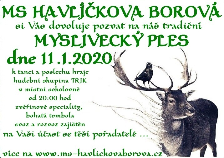 MS Havlíčkova Borová si Vás dovoluje pozvat na tradiční MYSLIVECKÝ PLES.