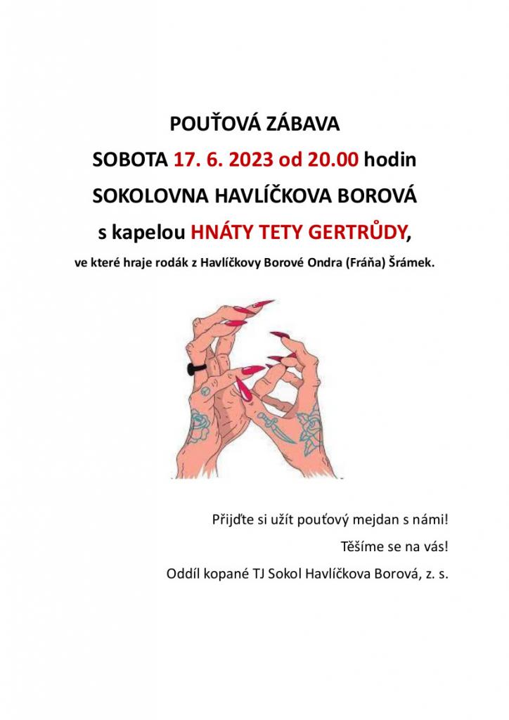 Přijďte si užít pouťový mejdan do místní sokolovny. Začátek od 20.00 hodin. Pořádá - Oddíl kopané TJ Sokol Havlíčkova Borová, z. s.