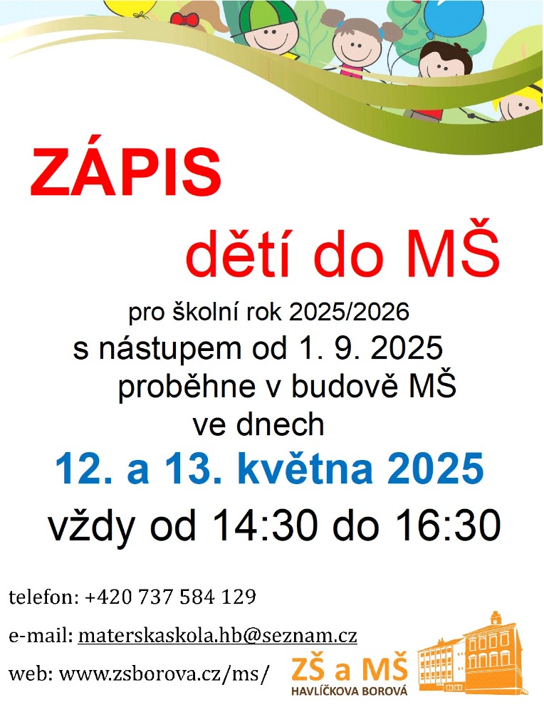 Ten se koná v pondělí 12. a v úterý 13. května 2025 v době mezi 14:30 do 16:30 v budově MŠ.